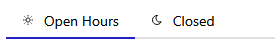 If you have configured open/closed hours and/or holiday schedules, you'll see the appropriate tabs at the top. e.g. in this example we have open/closed hours but no holiday schedules configured: