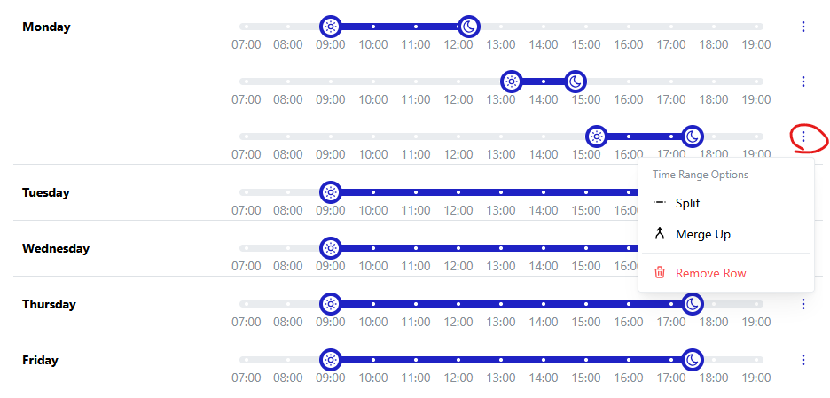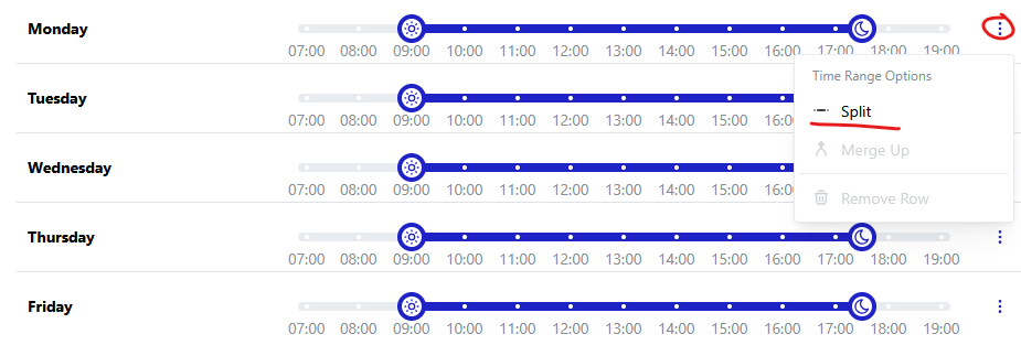 It might be that your office is not open for one continuous block throughout a given day. The wizard allows you to split up blocks to support this: